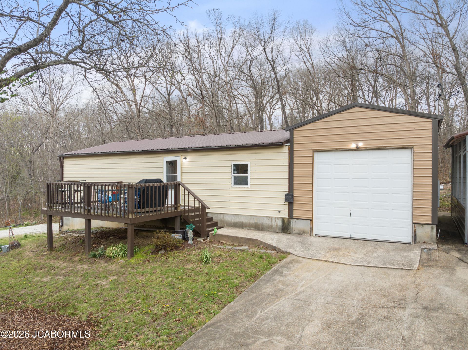 Welcome to the perfect blend of modern living and industrial utility. Built in 2022, this pristine 2-bedroom, 1.5-bathroom ''Shouse'' (Shop-House) is situated on nearly an acre of land, offering a rare sanctuary where privacy meets ultimate convenience. Located just moments from premier shopping, dining, and entertainment, this property provides a secluded feel without sacrificing accessibility. The residence is designed for durability and low maintenance, featuring high-quality metal siding, a metal roof, and an inviting open deck surrounded by mature trees. Inside, the space is fresh and modern, but the true highlight lies in the expansive shop and garage facilities. A car enthusiast or mechanic's dream, the property includes a 2-car attached garage equipped with a 9,000 lb Advantage Mobile Lift, a 1-car detached garage, a carport, and an RV pad with full hookups. With NO HOA restrictions and nearly an acre to roam, the home offers incredible expansion capabilities for those looking to grow. Whether you need a professional-grade workspace, secure storage for your lake toys, or a stylish, minimalist residence, this property delivers. Move-in ready and available now--come experience this unique lifestyle!
