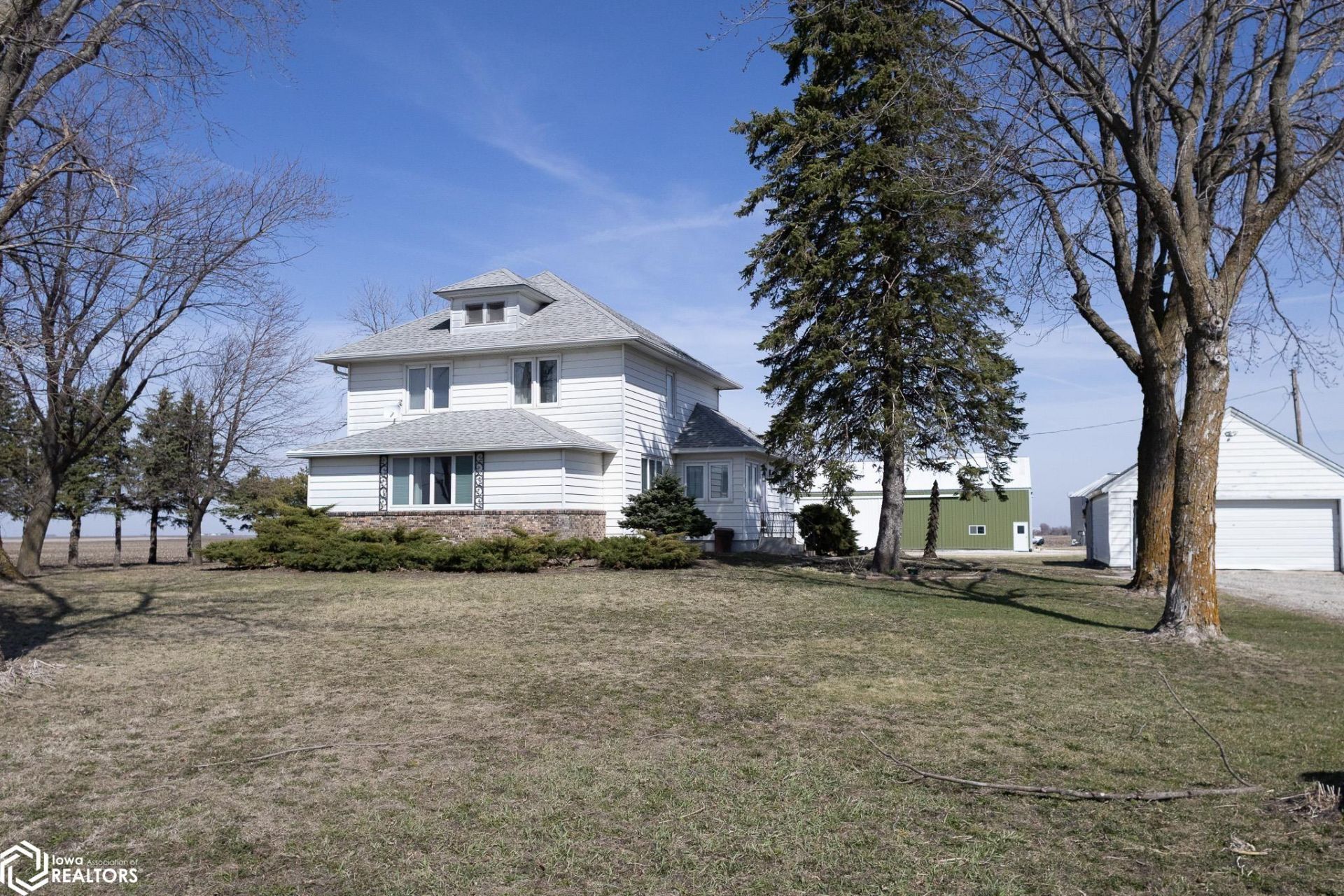 Welcome to this charming 2-story farmhouse offering the perfect blend of country living and modern comfort! Nestled on 1.02 peaceful acres just off Hwy 17 and conveniently located 9 miles from both Eagle Grove and Webster City, this spacious 4-bedroom home features 1,907 sq ft of living space and room to grow. Inside, you'll find thoughtful updates throughout the kitchen and bathroom, a main-floor bedroom, and the convenience of main-floor laundry. French doors open to generous living areas, providing plenty of natural light and flexibility for entertaining or relaxing. Upstairs, three spacious bedrooms offer comfort and privacy for family or guests. The unfinished basement includes framed sections?ready for your finishing touch. Outside, enjoy mature trees, open green space, and the charm of rural living. A lean-to provides storage and hobby possibilities. With a new septic system installed in 2019 and ample space indoors and out, this acreage is ready to be your next chapter. Come experience peaceful living with quick access to town?your farmhouse retreat awaits! Property located in Hamilton County.